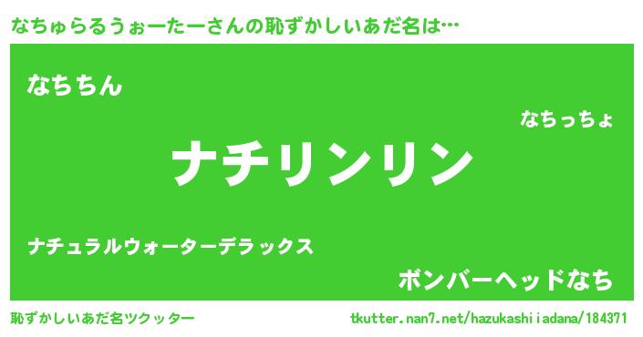 | 男性向けラノベタイトル風あだ名 | 『なちゅらるうぉーたーの嫁は女の子じゃないと思った?』 |