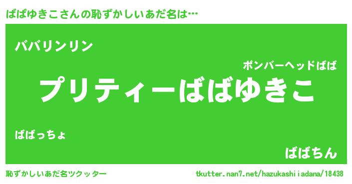 | 女子向けラノベタイトル風あだ名 | 『(仮)ばばゆきこのやんごとなき事情』 |