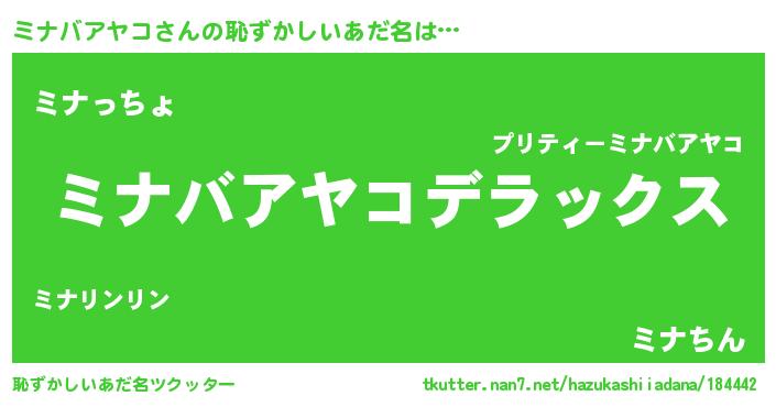 | ヒーロー風カッコイイあだ名 | 『最強戦士ミナバアヤコ』『仮面ミナダー』 |