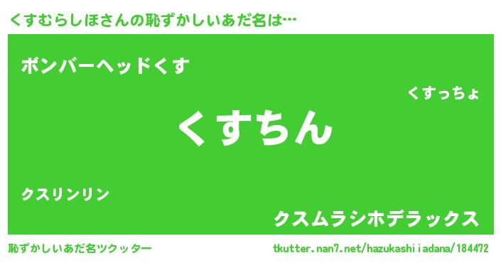 | 意味不明あだ名 | 『住所不定無職くすむらしほ(89歳)』 |