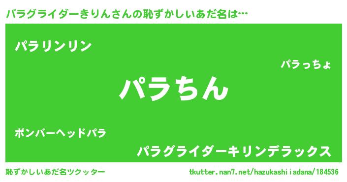 | 意味不明あだ名 | 『永久保存パラグライダーきりん』 |