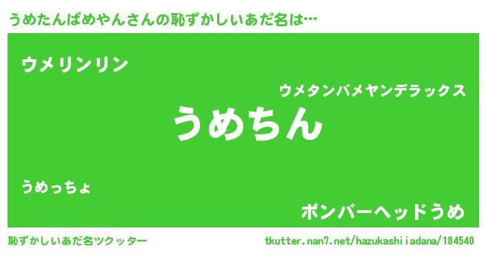 | ヘコむあだ名 | 『うめたんばめやん(遠い目)』『うめっぺ』 |