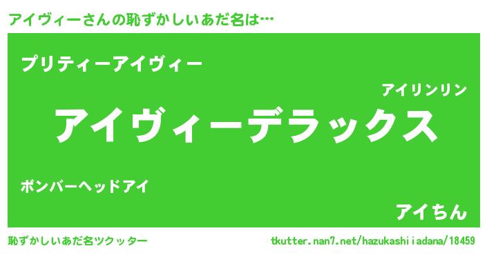 | 男性向けラノベタイトル風あだ名 | 『この素晴らしい世界にアイヴィーを!』 |
