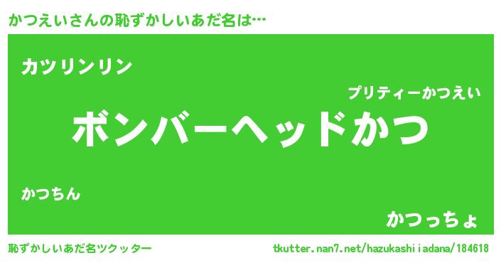| ヒーロー風カッコイイあだ名 | 『仮面カツダー』『慈愛の使者かつえい』 |