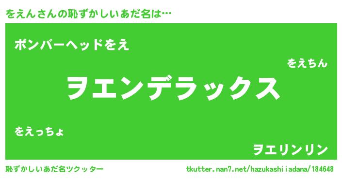 | ヒーロー風カッコイイあだ名 | 『サイバー戦士ヲエン』『銀牙騎士ヲエ』 |