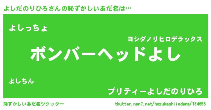 | 意味不明あだ名 | 『眠気覚ましガムよしだのりひろ味』 |