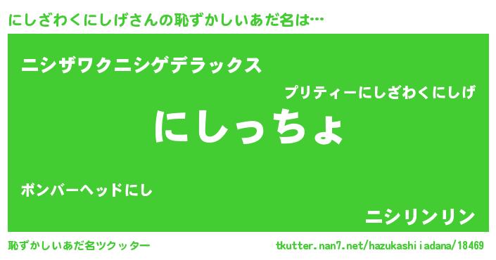 | 男性向けラノベタイトル風あだ名 | 『魔弾の王とにしざわくにしげ』 |