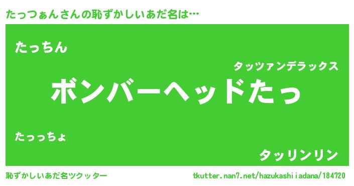 | 男性向けラノベタイトル風あだ名 | 『魔弾の王とたっつぁん』 |