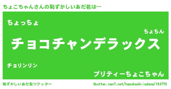 | 男性向けラノベタイトル風あだ名 | 『緋弾のチョコチャン』 |