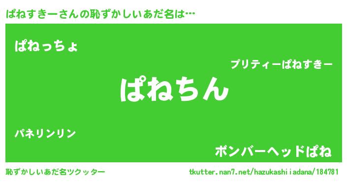 | 意味不明あだ名 | 『永久保存ぱねすきー』 |