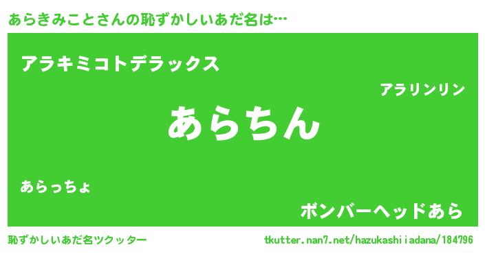 | 意味不明あだ名 | 『住所不定無職あらきみこと(74歳)』 |