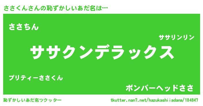 | 意味不明あだ名 | 『住所不定無職ささくん(12歳)』 |