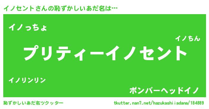| ヒーロー風カッコイイあだ名 | 『仮面イノダー』『スーパーイノセント』 |