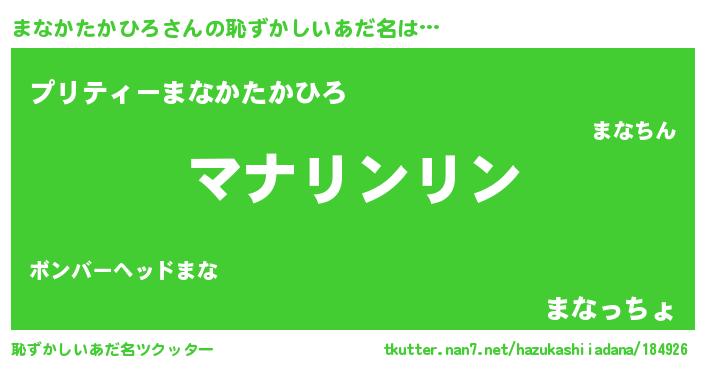 | 意味不明あだ名 | 『とにかく怪しいまなかたかひろ』 |