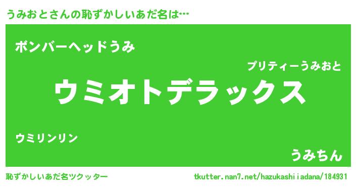 | ヒーロー風カッコイイあだ名 | 『究極戦士ウミオト』『仮面ウミダー』 |