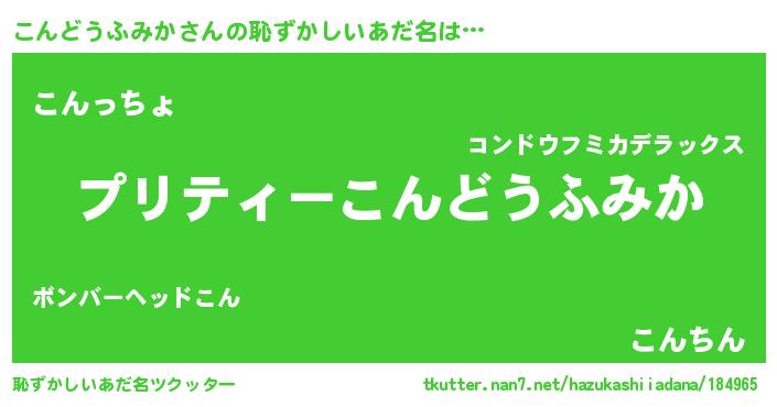 | 男性向けラノベタイトル風あだ名 | 『この素晴らしい世界にこんどうふみかを!』 |