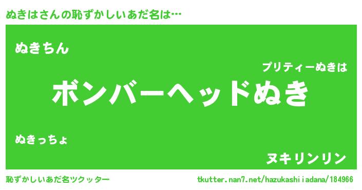 | ヘコむあだ名 | 『ぬきは(遠い目)』『ぬきっ子』 |