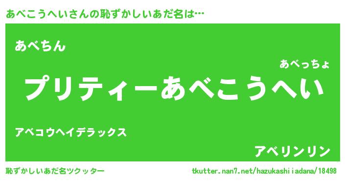 | ヘコむあだ名 | 『あべにー』『あべこうへい(苦笑)』 |