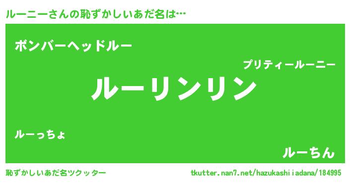 | 女子向けラノベタイトル風あだ名 | 『ルーニーの卵を拾いまして』 |