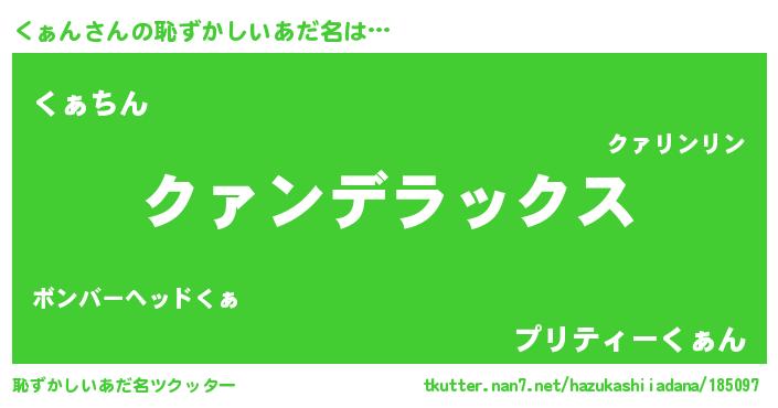 | 意味不明あだ名 | 『自称くぁん』『永久保存くぁん』 |