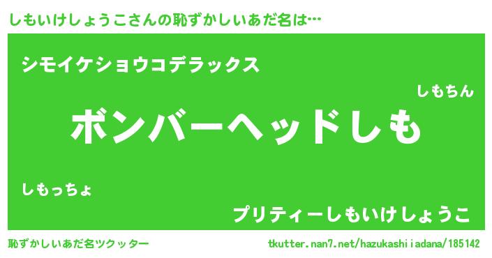 | 男性向けラノベタイトル風あだ名 | 『シモイケショウコスレイヤー』 |