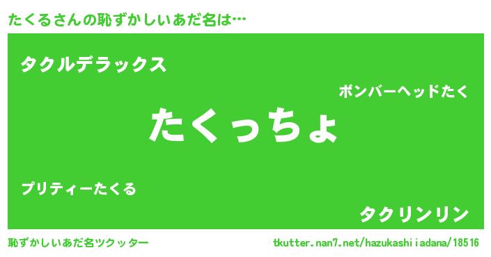 | ヒーロー風カッコイイあだ名 | 『仮面タクダー』『ウルトラたくるマン』 |