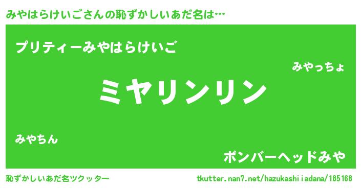 | ヘコむあだ名 | 『みやぷりん』『みやにゅー』 |