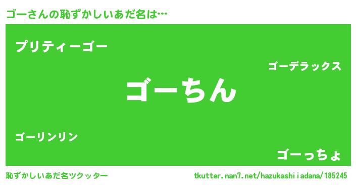 | 意味不明あだ名 | 『住所不定無職ゴー(8歳)』『永久保存ゴー』 |