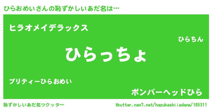 | 意味不明あだ名 | 『ひらおめいフォーエバー』 |