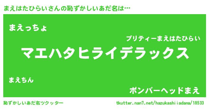 | 意味不明あだ名 | 『住所不定無職まえはたひらい(1歳)』 |