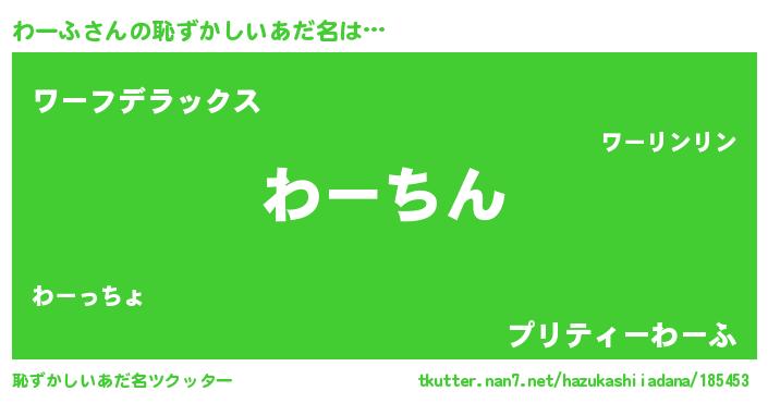 | 欧米人風あだ名 | 『アンジェラ・わーふ』 |