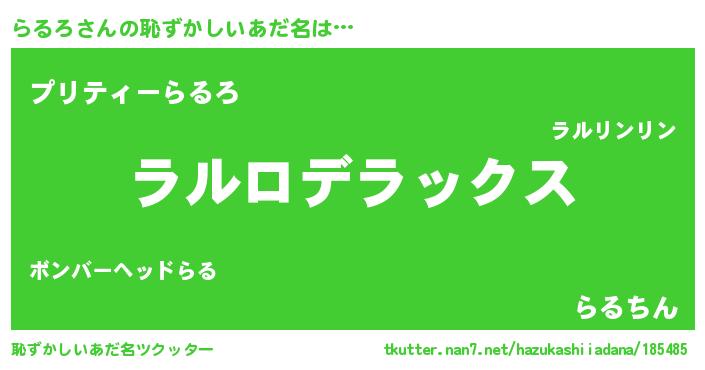 | 意味不明あだ名 | 『自称らるろ』『ペロリンらるろ』 |