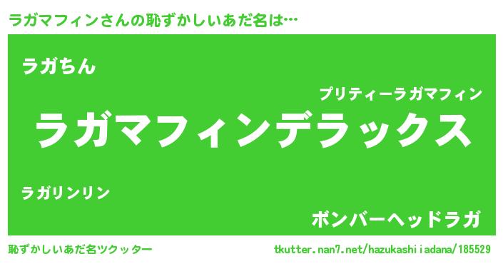 | ヘコむあだ名 | 『ラガマフィン(小並感)』『ラガにゅー』 |