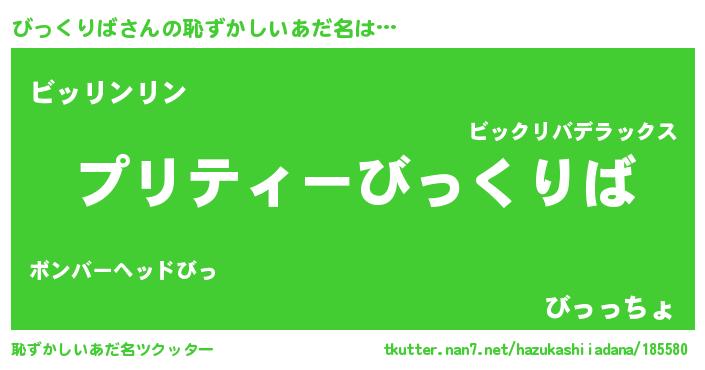 | ヒーロー風カッコイイあだ名 | 『スーパービックリバ』『魔戒騎士ビッ』 |