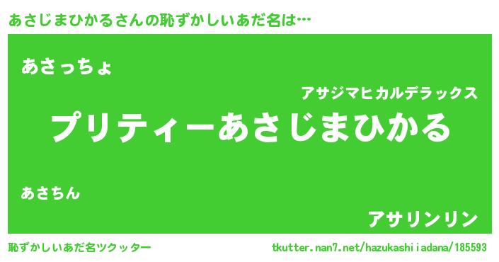 | 女子向けラノベタイトル風あだ名 | 『シンデレラあさじまひかる家の靴箱館』 |