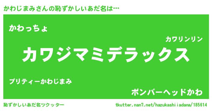 | 男性向けラノベタイトル風あだ名 | 『Re:かわじまみから始める異世界生活』 |