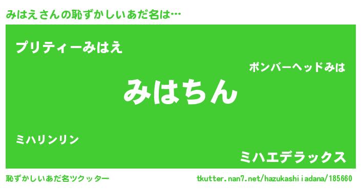| 欧米人風あだ名 | 『ダルビッシュみはえ』『マイケルみはえ』 |