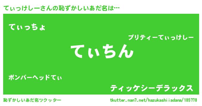 | ヘコむあだ名 | 『てぃっけしー(笑)』『なまこ酢』 |