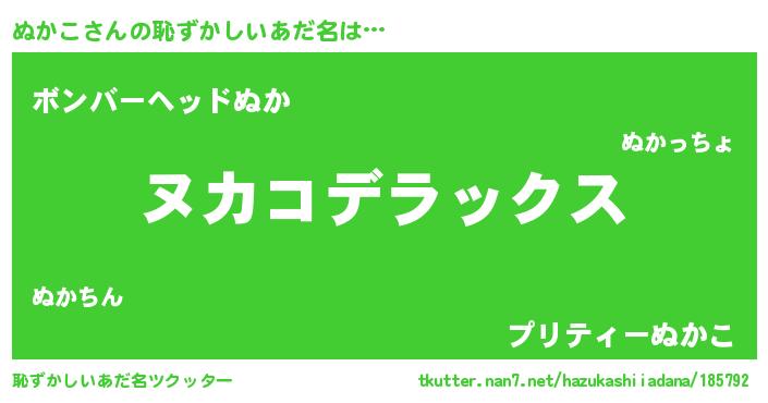 | 男性向けラノベタイトル風あだ名 | 『緋弾のヌカコ』『魔法科高校のぬかこ』 |