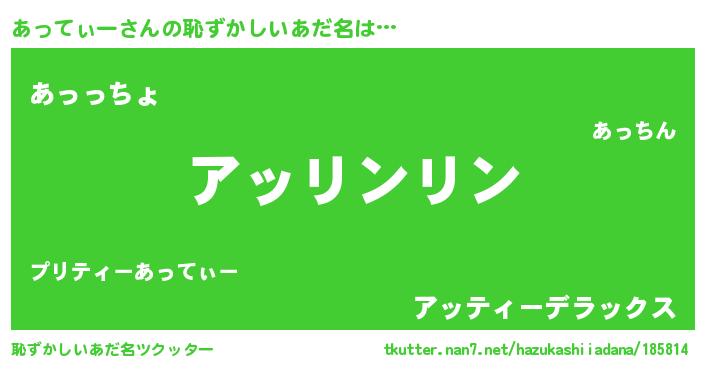 | 男性向けラノベタイトル風あだ名 | 『ダンジョンにあってぃーを求めるのは間違っているだろうか』 |