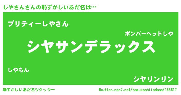 | ヒーロー風カッコイイあだ名 | 『仮面シヤダー』『サイバー戦士シヤサン』 |