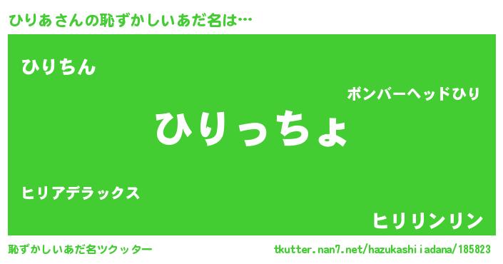 | ヒーロー風カッコイイあだ名 | 『ウルトラひりあマン』『ネオヒリア』 |