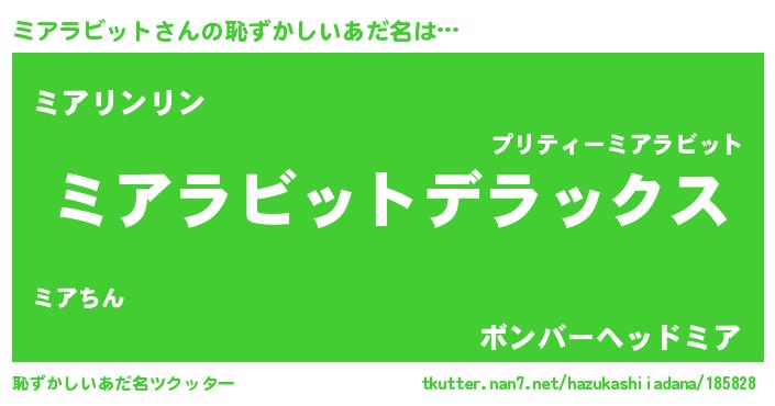 | 女子向けラノベタイトル風あだ名 | 『ミアラビットアンティーク』 |