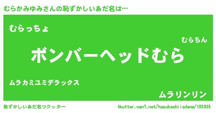 | 意味不明あだ名 | 『なめこ科むらかみゆみ属』 |