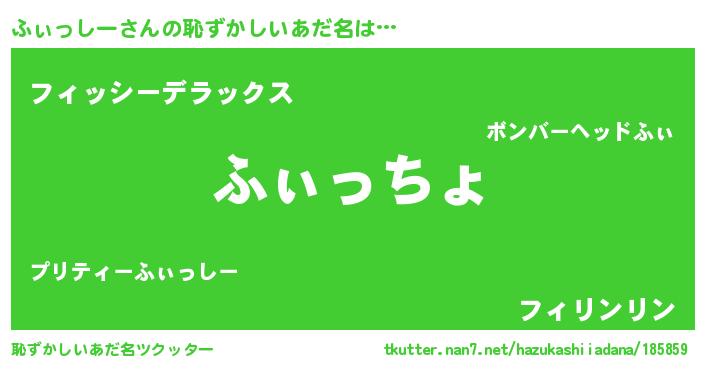 | 男性向けラノベタイトル風あだ名 | 『転生したらふぃっしーだった件』 |