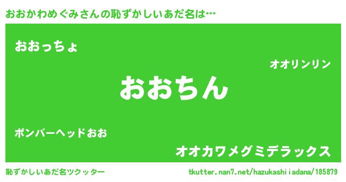 | ヒーロー風カッコイイあだ名 | 『ネオオオカワメグミ』『仮面オオダー』 |
