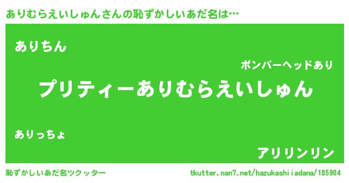 | ツイッター | ありむらえいしゅんさんのツイッターID『namakemono_idle』 |
