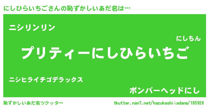 | 男性向けラノベタイトル風あだ名 | 『ニシヒライチゴアートオンライン』 |
