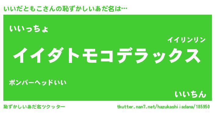 | 男性向けラノベタイトル風あだ名 | 『Re:いいだともこから始める異世界生活』 |