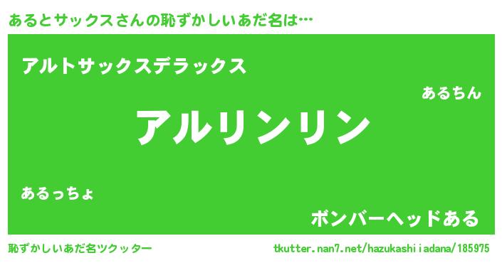 | 男性向けラノベタイトル風あだ名 | 『あるとサックスの嫁は女の子じゃないと思った?』 |